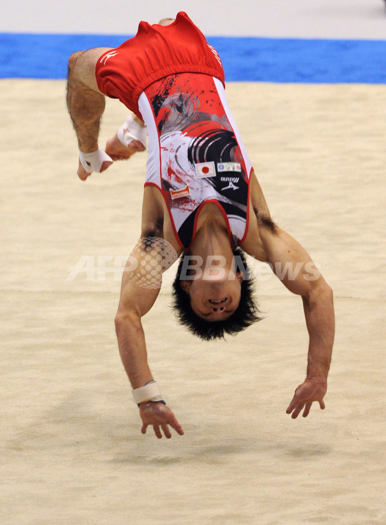 ゆかの演技に臨む内村航平(2011年10月15日撮影)。(c)AFP/KAZUHIRO NOGI