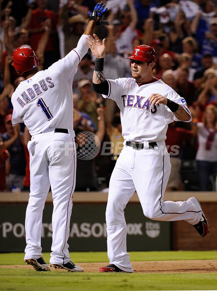 【10月16日 AFP】米大リーグ(MLB)は15日、テキサス・レンジャーズ(Texas Rangers)とデトロイト・タイガース(Detroit Tigers)によるプレーオフのア・リーグ優勝決定シリーズ(7回戦制)第6戦がレンジャーズ・ボールパーク・イン・アーリントン(Rangers Ballpark in Arlington)で行われ、レンジャーズが15-5でタイガースに圧勝し、対戦成績を4勝2敗として2年連続のワールドシリーズ出場を決めた。