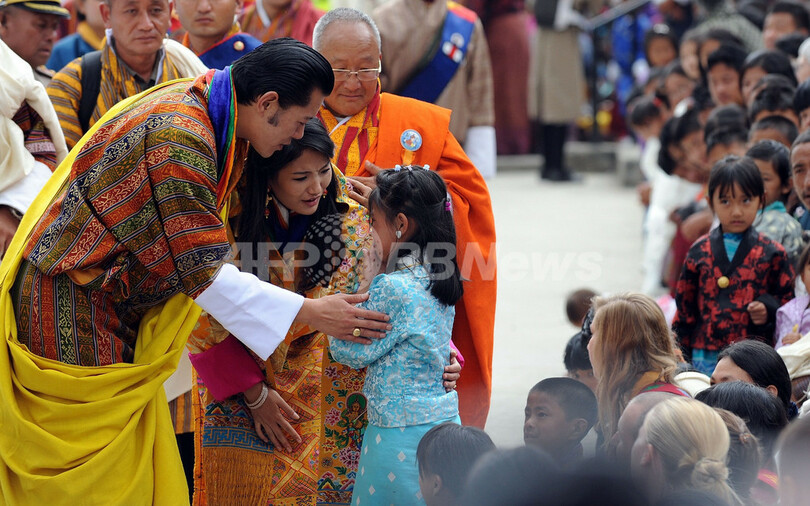 ブータンのロイヤル・ウエディング、祝賀行事でキスも披露