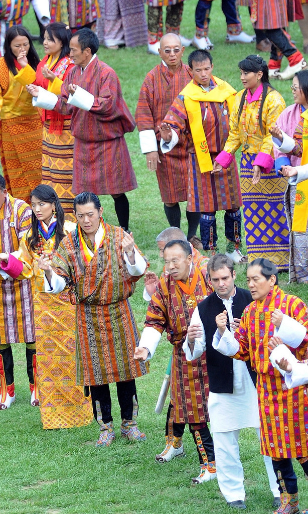 ブータンのロイヤル・ウエディング、祝賀行事でキスも披露