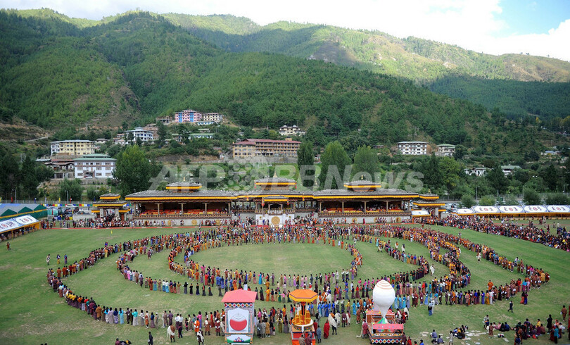 ブータンのロイヤル・ウエディング、祝賀行事でキスも披露