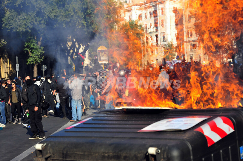 【10月16日 AFP】イタリアの首都ローマ(Rome)で15日、強欲な企業や政府の支出削減に抗議するデモが開かれ、デモ参加者の一部が暴徒化して銀行建物を壊し、軍施設に放火した。同日に世界各地で開かれた抗議デモの中で、最悪の暴動となった。