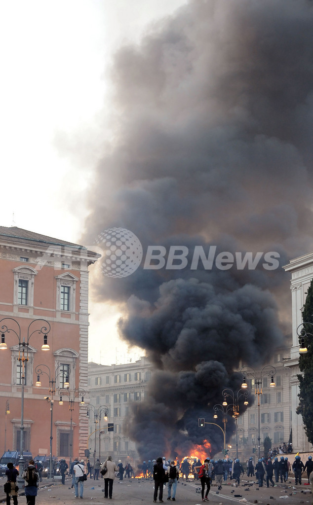 【10月16日 AFP】イタリアの首都ローマ(Rome)で15日、強欲な企業や政府の支出削減に抗議するデモが開かれ、デモ参加者の一部が暴徒化して銀行建物を壊し、軍施設に放火した。同日に世界各地で開かれた抗議デモの中で、最悪の暴動となった。
