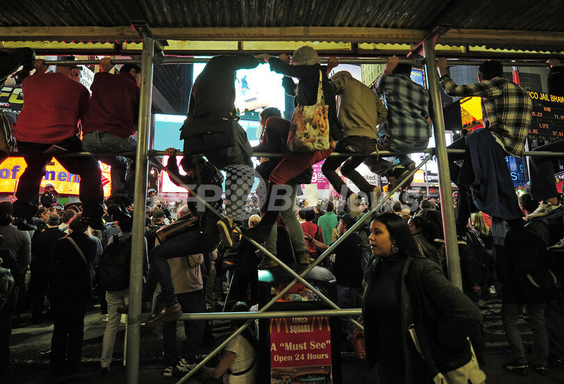 「Occupy Wall Street(ウォール街を占拠せよ)」の抗議運動の中心地である金融街から始まったデモは、46番通りと7番街通りの交差点で警官隊と衝突。騎馬隊はタイムズスクエアに入り込もうとするデモ参加者を阻止しようと押し返したが、パニックになった数十人の人びとが走り出し、女性が倒れて頭部を負傷して担架で搬送された。