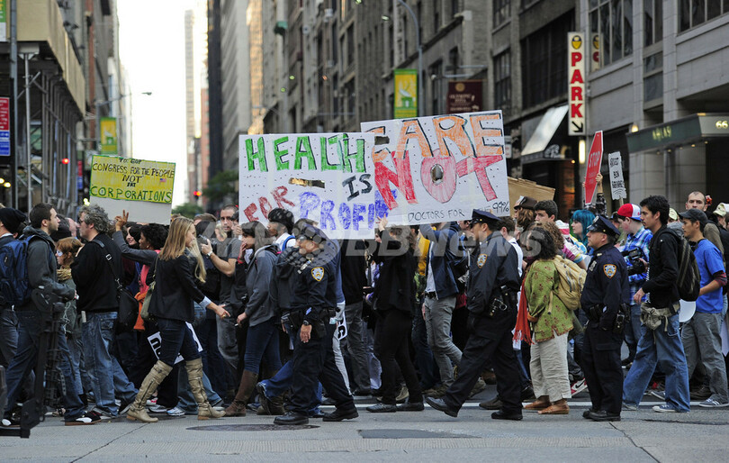 【10月16日 AFP】企業の強欲さに抗議するデモが世界各地で行われた15日、ニューヨーク(New York)では、タイムズスクエア(Times Square)でデモ隊と騎馬警官隊が衝突し、市内で少なくとも88人が逮捕された。