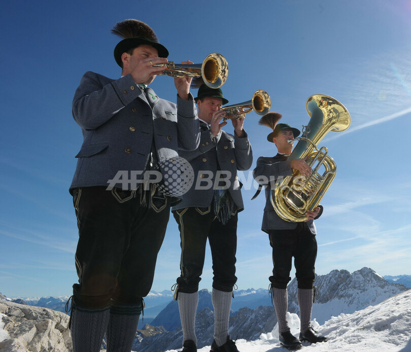 ニュース ライフ こぼれ話 標高2600メートルに響きわたるホルンの山びこ、ドイツ 2011年10月17日 12:21 発信地:ツークシュピッツェ/ドイツ [ ヨーロッパ ドイツ ] このニュースをシェア ‹ › ❮ 1/7 ❯ ドイツ・アルプスにある同国最高峰ツークシュピッツェ(Zugspitze)山(2962メートル)の山腹、標高2600メートルの地点で16日、管楽器奏者たちがバイエルン地方の伝統衣装に身を包んで演奏を披露した。山ろくにある教会の祝祭行事だという。気象予報によるとドイツ南部では今後数日、秋らしい快晴が続く見込み(2011年10月16日撮影)。(c)AFP/CHRISTOF STACHE 画像作成中 ! 【10月17日 AFP】ドイツ・アルプスにある同国最高峰ツークシュピッツェ(Zugspitze)山(2962メートル)の山腹、標高2600メートルの地点で16日、管楽器奏者たちがバイエルン地方の伝統衣装に身を包んで演奏を披露した。山ろくにある教会の祝祭行事だという。気象予報によるとドイツ南部では今後数日、秋らしい快晴が続く見込み。(c)AFP ライフ 一覧へ> メディア・報道関係・法人の方向け 写真・動画 購入のお問合せ>