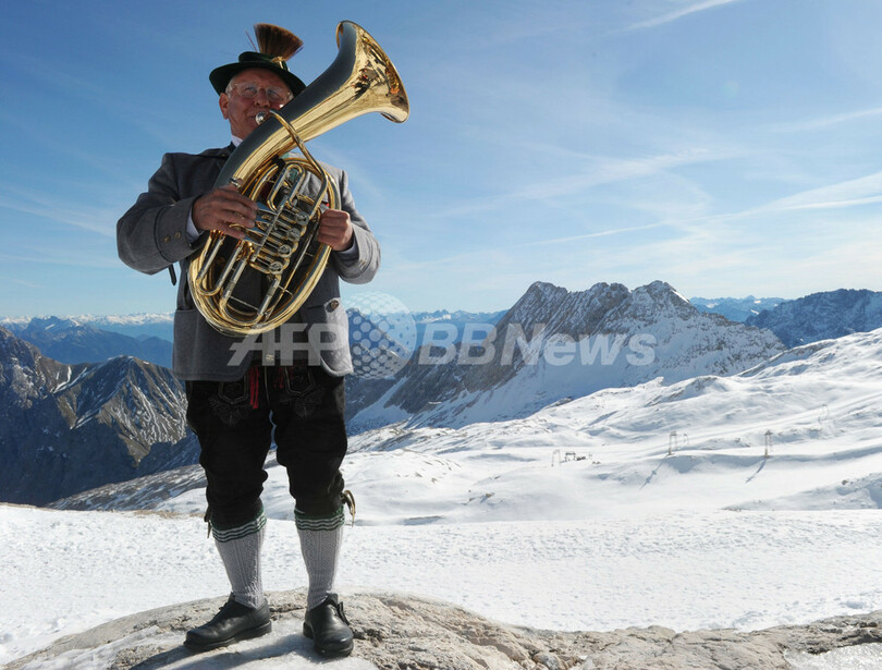 ニュース ライフ こぼれ話 標高2600メートルに響きわたるホルンの山びこ、ドイツ 2011年10月17日 12:21 発信地:ツークシュピッツェ/ドイツ [ ヨーロッパ ドイツ ] このニュースをシェア ‹ › ❮ 2/7 ❯ ドイツ・アルプスにある同国最高峰ツークシュピッツェ(Zugspitze)山(2962メートル)の山腹、標高2600メートルの地点で16日、管楽器奏者たちがバイエルン地方の伝統衣装に身を包んで演奏を披露した。山ろくにある教会の祝祭行事だという。気象予報によるとドイツ南部では今後数日、秋らしい快晴が続く見込み(2011年10月16日撮影)。(c)AFP/CHRISTOF STACHE 画像作成中 ! 【10月17日 AFP】ドイツ・アルプスにある同国最高峰ツークシュピッツェ(Zugspitze)山(2962メートル)の山腹、標高2600メートルの地点で16日、管楽器奏者たちがバイエルン地方の伝統衣装に身を包んで演奏を披露した。山ろくにある教会の祝祭行事だという。気象予報によるとドイツ南部では今後数日、秋らしい快晴が続く見込み。(c)AFP ライフ 一覧へ> メディア・報道関係・法人の方向け 写真・動画 購入のお問合せ>