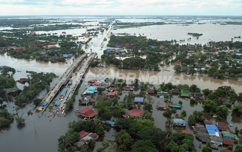 約300人の死者を出した今回の洪水では、国内の水田の1割に被害が出たほか、首都バンコク(Bangkok)北部で主な幹線道路が通行止めとなり、タイ経済を支える輸出産業の工場も多数被災した。