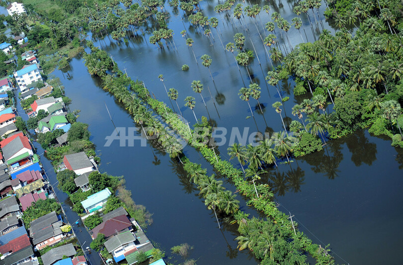 約300人の死者を出した今回の洪水では、国内の水田の1割に被害が出たほか、首都バンコク(Bangkok)北部で主な幹線道路が通行止めとなり、タイ経済を支える輸出産業の工場も多数被災した。