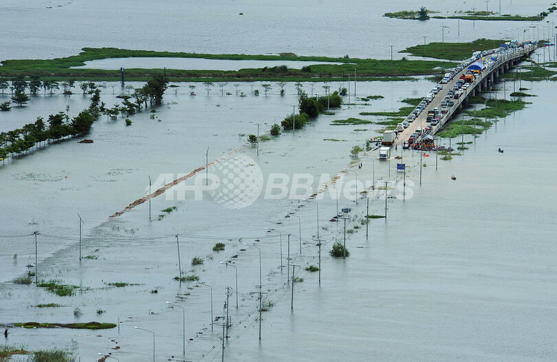 約300人の死者を出した今回の洪水では、国内の水田の1割に被害が出たほか、首都バンコク(Bangkok)北部で主な幹線道路が通行止めとなり、タイ経済を支える輸出産業の工場も多数被災した。