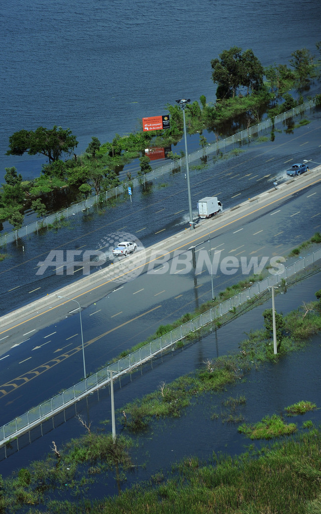 約300人の死者を出した今回の洪水では、国内の水田の1割に被害が出たほか、首都バンコク(Bangkok)北部で主な幹線道路が通行止めとなり、タイ経済を支える輸出産業の工場も多数被災した。