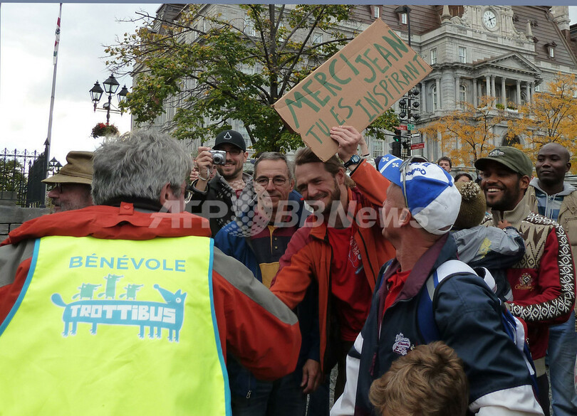 【10月18日 AFP】事業に失敗して家を離れ、ひたすら世界を歩き続けてきたカナダ人、ジャン・ベリボー(Jean Beliveau)さん(56)が16日、ついに故郷のモントリオール(Montreal)に到着。11年におよんだ徒歩での世界一周を達成した。