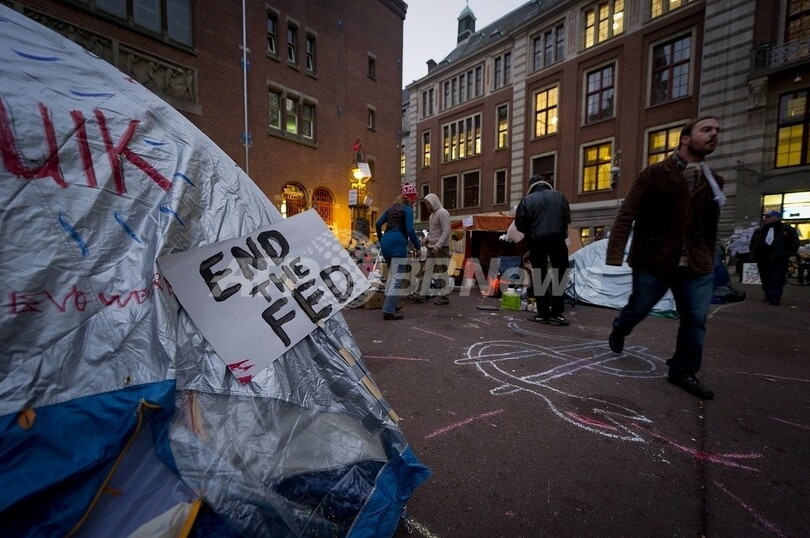 ロンドンのほか、ドイツのフランクフルト(Frankfurt)やオランダのアムステルダム(Amsterdam)でも、テントを張った座り込み集会が続いている。