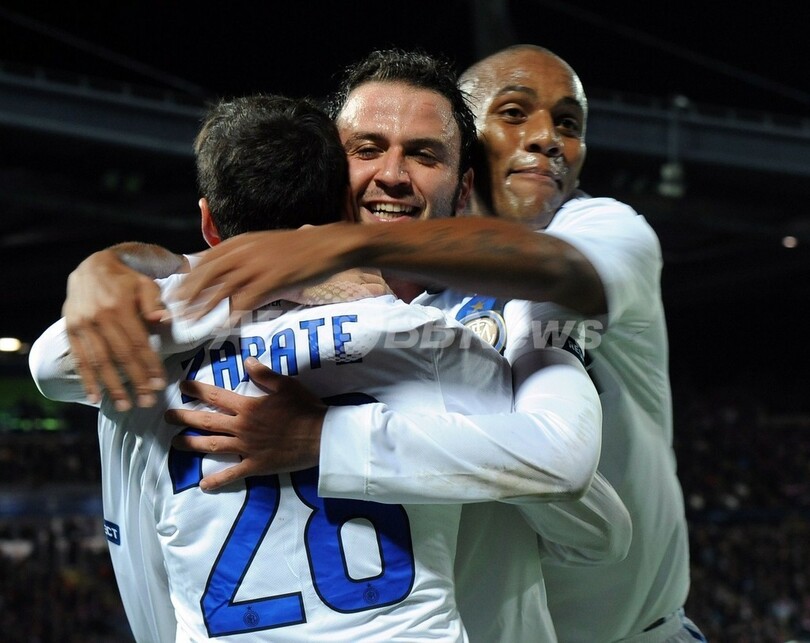 グループBではインテル(Inter Milan)がジャンパオロ・パッツィーニ(Giampaolo Pazzini)の得点でリール(Lille OSC)を1-0で下した。また、CSKAモスクワ(CSKA Moscow)がセイドゥ・ドゥンビア(Seydou Doumbia)の活躍でトラブゾンスポル(Trabzonspor)に3-0で勝利している。(c)AFP/Pirate Irwin
