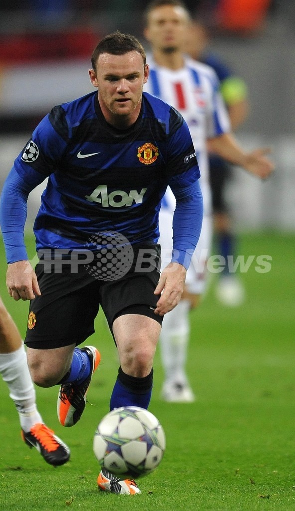 ボールを追うマンチェスター・ユナイテッドのウェイン・ルーニー(Wayne Rooney、2011年10月18日撮影)。(c)AFP/DANIEL MIHAILESCU