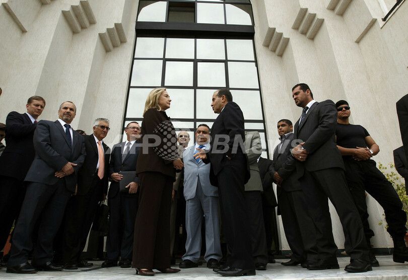 クリントン長官は国民評議会(National Transitional Council、NTC)のムスタファ・アブドルジャリル(Mustafa Abdel Jalil)議長らと会談し、「リビアは勝利した。この国の未来はあなた方にゆだねられている」と語った。米政府はリビアのイスラム教徒に協力できるのかとの質問には、「法の支配を尊重し、マイノリティーと女性の権利を尊重し、報道の自由を保障する民主主義への移行プロセスをわれわれは支援していく」と答えた。