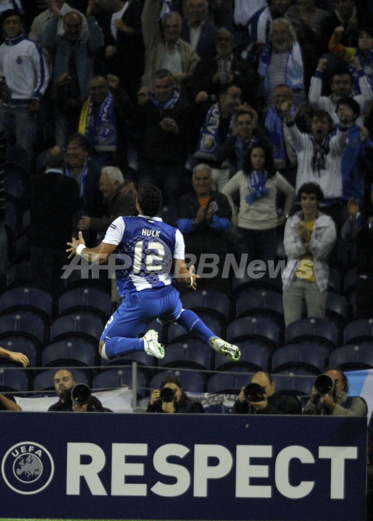 前半13分に先制点を挙げて歓喜するFCポルトのフッキ(Hulk、2011年10月19日撮影)。(c)AFP/MIGUEL RIOPA