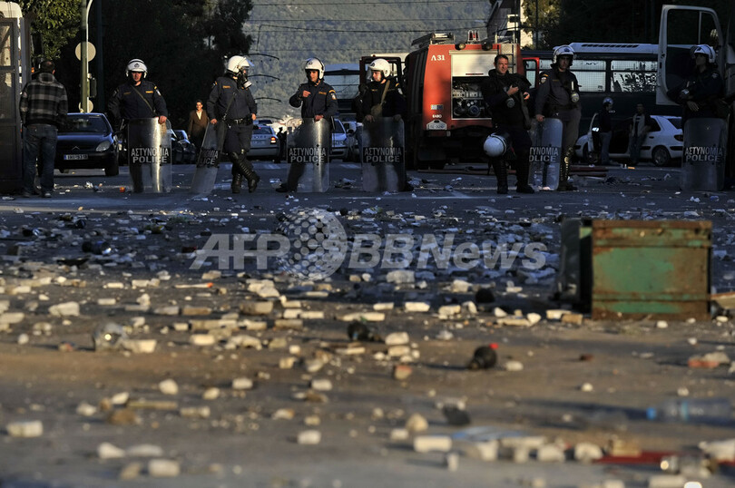 【10月20日 AFP】ギリシャ各地で19日、財政破たん回避のための新たな緊縮策が議会で採決されるのを前に2日間のゼネストが開始され、首都アテネ(Athens)では一部が警官隊と衝突した。