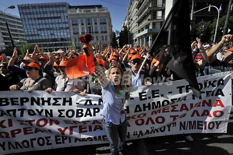 【10月20日 AFP】ギリシャ各地で19日、財政破たん回避のための新たな緊縮策が議会で採決されるのを前に2日間のゼネストが開始され、首都アテネ(Athens)では一部が警官隊と衝突した。