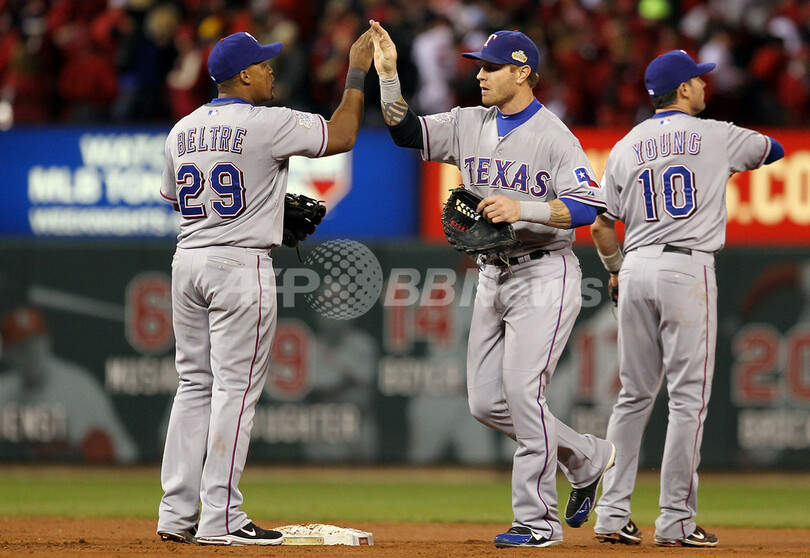 【10月21日 AFP】米大リーグ(MLB)は20日、セントルイス・カージナルス(St. Louis Cardinals)とテキサス・レンジャーズ(Texas Rangers)によるワールドシリーズ(7回戦制)第2戦が米ミズーリ(Missouri)州セントルイス(St. Louis)のブッシュ・スタジアム(Busch Stadium)で行われ、レンジャーズが2-1でカージナルスを下し、対戦成績を1勝1敗のタイに戻した。