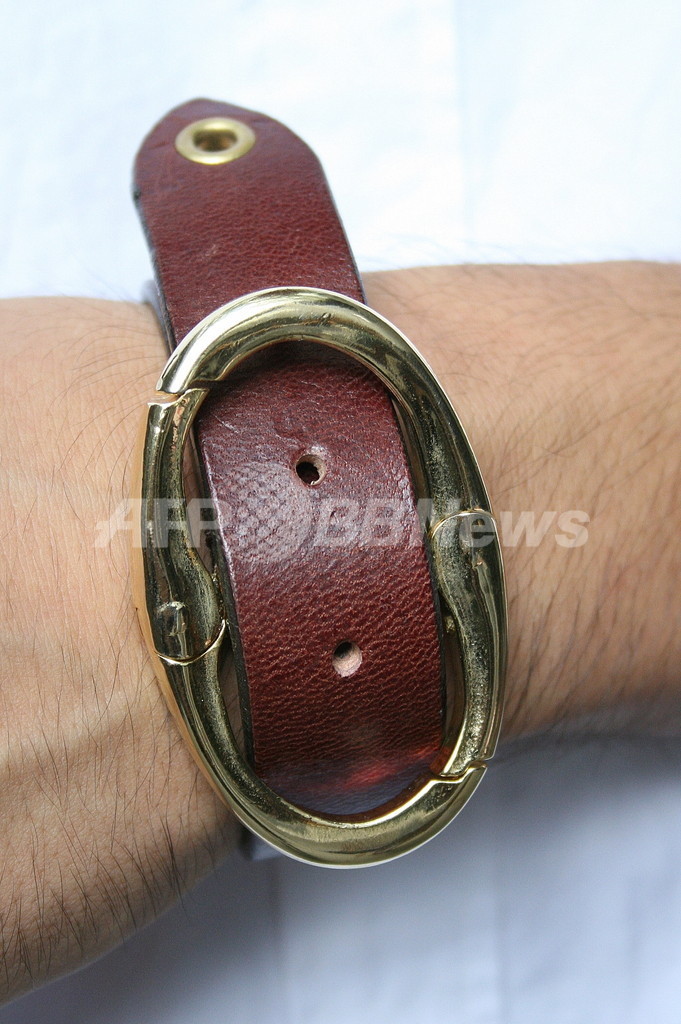 レザーブレスレットは、パンツのベルトループにかけるとキーホルダー、シャツホルダーとしても使える便利な3ウェイ・アイテムになっています。(c)MODE PRESS