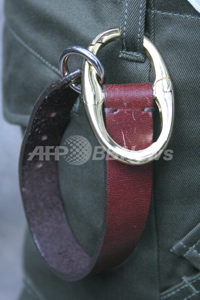 レザーブレスレットは、パンツのベルトループにかけるとキーホルダー、シャツホルダーとしても使える便利な3ウェイ・アイテムになっています。(c)MODE PRESS