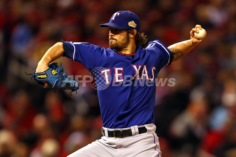 カージナルス戦に先発登板し、5回を投げて4安打3失点だったレンジャーズのC.Jウィルソン(C.J. Wilson、2011年10月19日撮影)。(c)AFP/Getty Images/Dilip Vishwanat