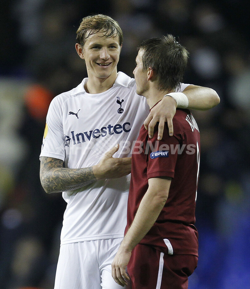 スポーツ サッカー シャルケ04が大勝、スパーズも勝利 ヨーロッパリーグ 2011年10月21日 13:28 発信地:パリ/フランス [ ヨーロッパ フランス ] このニュースをシェア ‹ › ❮ 2/14 ❯ サッカーヨーロッパリーグ2011-12(UEFA Europa League 2010-11)は20日、各地でグループリーグ第3節が行われ、トッテナム・ホットスパー(Tottenham Hotspur)は1-0でルビン・カザニ(FC Rubin Kazan)に勝利した。試合後にルビン・カザニのオレグ・クズミン(Oleg Kuzmin)と健闘を称えあうトッテナム・ホットスパーのロマン・パフリュチェンコ(Roman Pavlyuchenko、2011年10月20日撮影)。(c)AFP/IAN KINGTON 画像作成中 ! 【10月21日 AFP】サッカーヨーロッパリーグ2011-12(UEFA Europa League 2010-11)は20日、各地でグループリーグ第3節が行われた。(c)AFP サッカー 一覧へ> メディア・報道関係・法人の方向け 写真・動画 購入のお問合せ>
