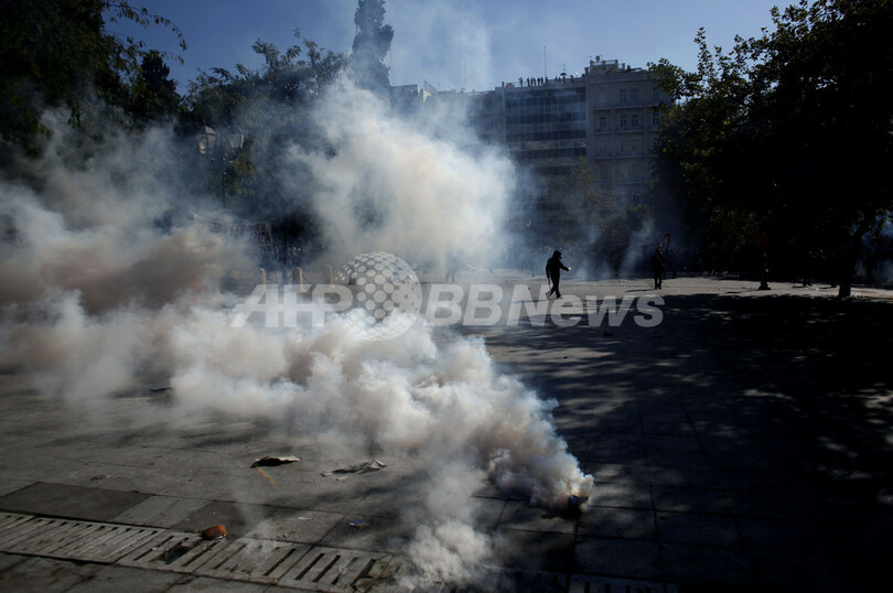 一方、ゼネスト2日目の同日、採決が行われる首都アテネ(Athens)の国会議事堂前のシンタグマ広場(Syntagma Square)には約3万5000人のデモ参加者が集結し、一部が警官隊と衝突。1人が死亡した。
