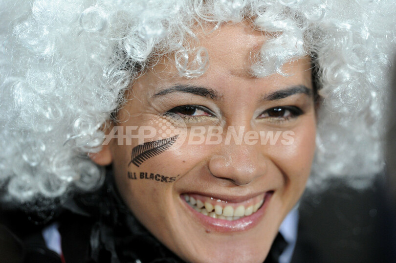 試合開始を待つオールブラックスのファン。(2011年10月23日撮影)。(c)AFP/GABRIEL BOUYS