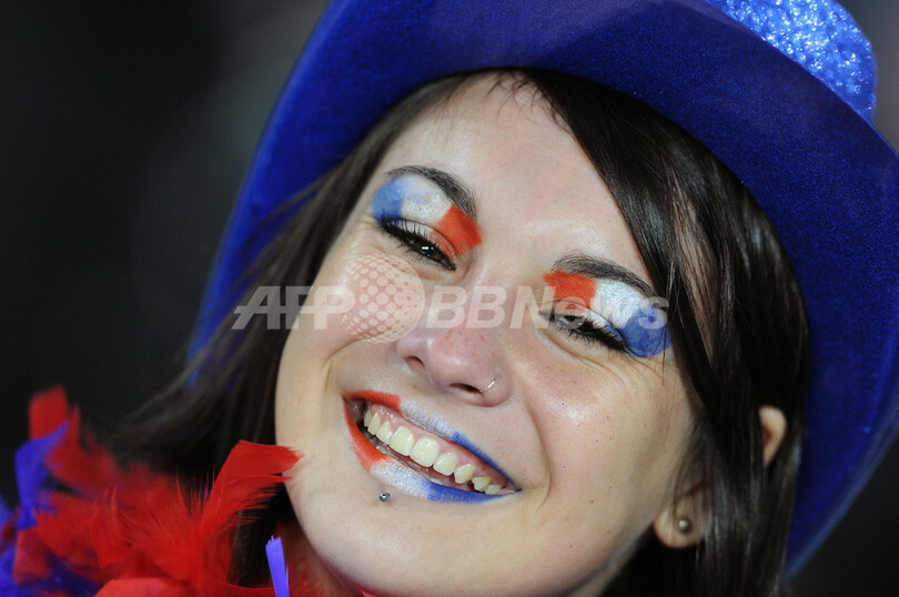試合開始を待つフランスのファン。(2011年10月23日撮影)。(c)AFP/GABRIEL BOUYS