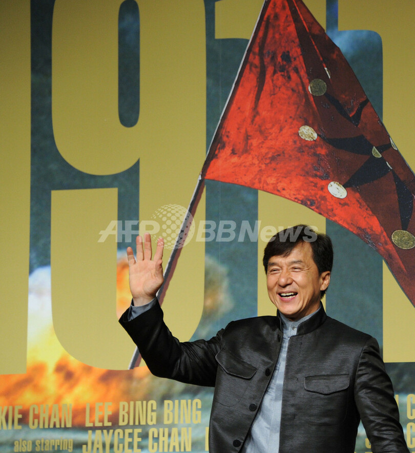 【10月22日 AFP】俳優ジャッキー・チェン(Jackie Chan)が21日、主演・監督を務め、さらに100本目の出演作となる映画『1911』の記者会見を都内で開いた。会見にはタレントの中川翔子(Shoko Nakagawa)さんも登場し、ジャッキーに花束を渡した。『1911』は22日に「東京国際映画祭(Tokyo International Film Festival、TIFF)」で上映された後、11月5日から公開される。(c)AFP
