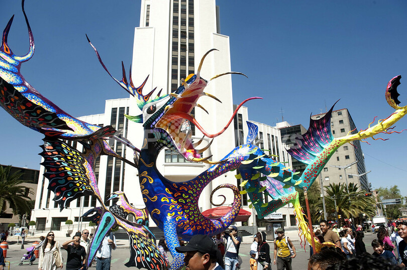 ニュース ライフ 色鮮やかな民芸品「アレブリヘス」のパレード、メキシコ 2011年10月23日 17:19 発信地:メキシコ市/メキシコ [ 中南米 メキシコ ] このニュースをシェア ‹ › ❮ 14/16 ❯ メキシコの首都メキシコ市(Mexico City)で22日、第5回アレブリヘス(Alebrijes)・パレードが行われた。アレブリヘスは想像上の生物を表現したメキシコの民芸品。多数のアレブリヘスがパレードに参加した。写真は龍のアレブリヘスの山車(2011年10月22日撮影)。(c)AFP/Yuri CORTEZ 画像作成中 ! 【10月23日 AFP】メキシコの首都メキシコ市(Mexico City)で22日、第5回アレブリヘス(Alebrijes)・パレードが行われた。アレブリヘスは想像上の生物を表現したメキシコの民芸品。多数のアレブリヘスがパレードに参加した。(c)AFP ライフ 一覧へ> メディア・報道関係・法人の方向け 写真・動画 購入のお問合せ>