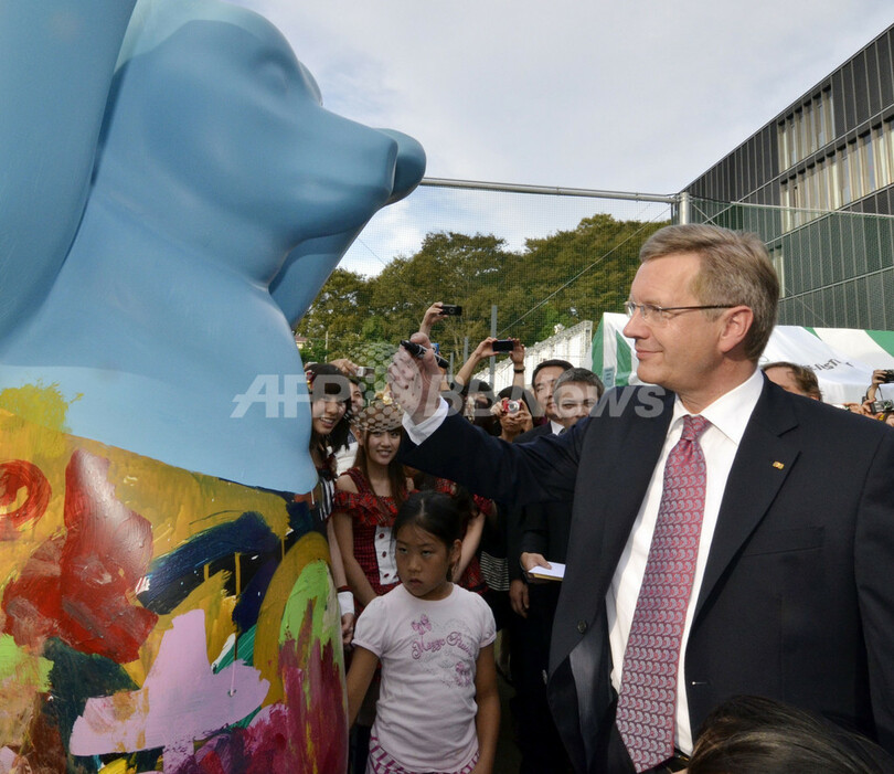 ニュース 政治・経済 ドイツ大統領、AKB48とサイン交換 日独交流150周年イベント 2011年10月23日 19:00 発信地:東京 [ アジア・オセアニア 東京 ] このニュースをシェア ‹ › ❮ 7/7 ❯ 来日中のクリスチャン・ウルフ(Christian Wulff)独大統領は23日、都内のドイツ大使館で開かれた日独交流150周年記念イベントで、日本のアイドルグループAKB48とサイン交換を行った。ウルフ大統領は6日間の日程で来日中。写真は、クマの像にサインするウルフ大統領(2011年10月23日撮影)。(c)AFP/Yoshikazu TSUNO 画像作成中 ! 【10月23日 AFP】来日中のクリスチャン・ウルフ(Christian Wulff)独大統領は23日、都内のドイツ大使館で開かれた日独交流150周年記念イベントで、日本のアイドルグループAKB48とサイン交換を行った。ウルフ大統領は6日間の日程で来日中。(c)AFP 政治・経済 一覧へ> メディア・報道関係・法人の方向け 写真・動画 購入のお問合せ>