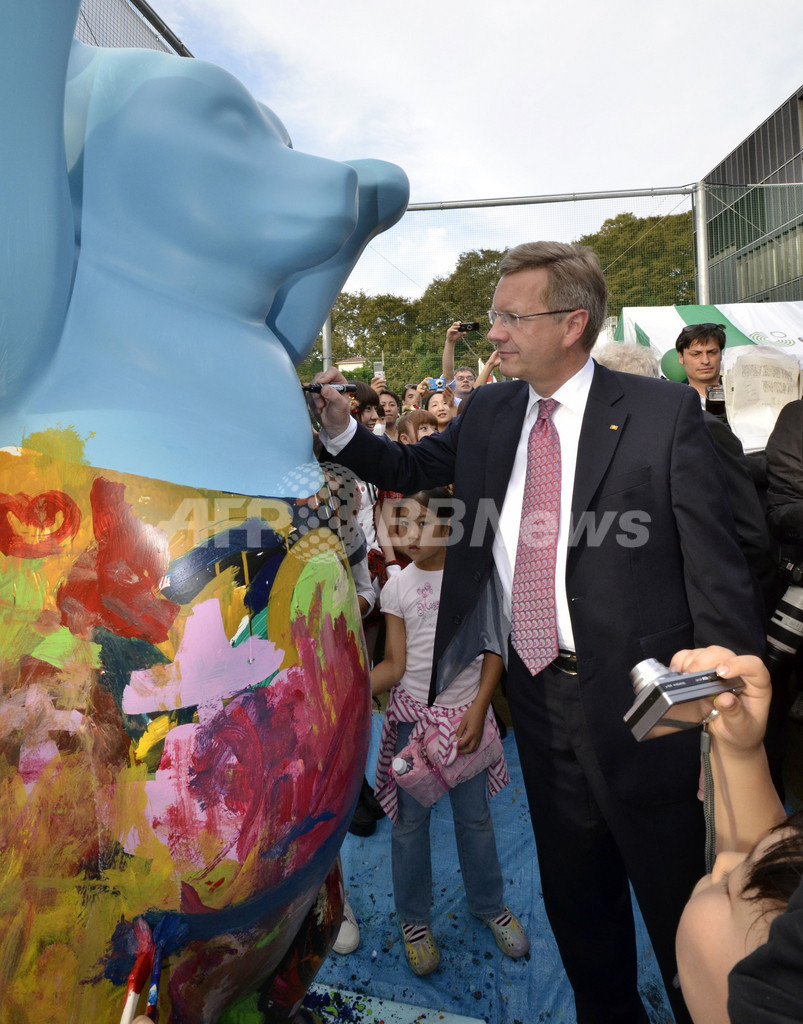 ニュース 政治・経済 ドイツ大統領、AKB48とサイン交換 日独交流150周年イベント 2011年10月23日 19:00 発信地:東京 [ アジア・オセアニア 東京 ] このニュースをシェア ‹ › ❮ 6/7 ❯ 来日中のクリスチャン・ウルフ(Christian Wulff)独大統領は23日、都内のドイツ大使館で開かれた日独交流150周年記念イベントで、日本のアイドルグループAKB48とサイン交換を行った。ウルフ大統領は6日間の日程で来日中。写真は、クマの像にサインするウルフ大統領(2011年10月23日撮影)。(c)AFP/Yoshikazu TSUNO 画像作成中 ! 【10月23日 AFP】来日中のクリスチャン・ウルフ(Christian Wulff)独大統領は23日、都内のドイツ大使館で開かれた日独交流150周年記念イベントで、日本のアイドルグループAKB48とサイン交換を行った。ウルフ大統領は6日間の日程で来日中。(c)AFP 政治・経済 一覧へ> メディア・報道関係・法人の方向け 写真・動画 購入のお問合せ>