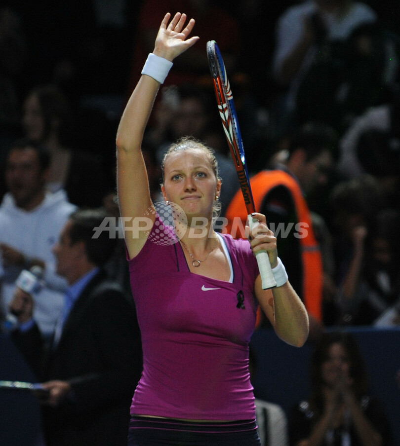 試合後、観衆の声援に応えるぺトラ・クヴィトバ(2011年10月25日撮影)。(c)AFP/BULENT KILIC