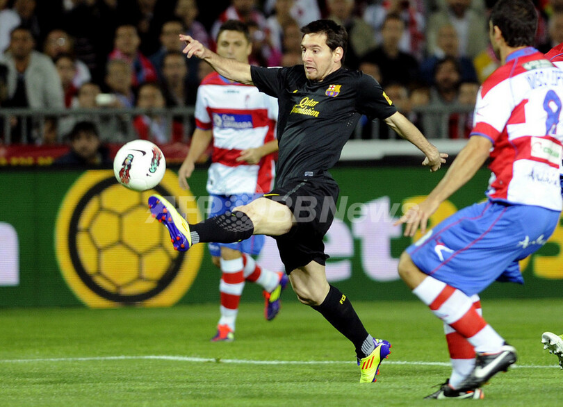 後半に入るとFCバルセロナは、ハイメ・ロメロ(Jaime Romero)、ダニエル・ベニテス(Daniel Benitez)が退場処分となり数的不利となったグラナダから追加点を奪うことができなかったものの、公式戦での連続無失点記録を7試合に伸ばした。(c)AFP