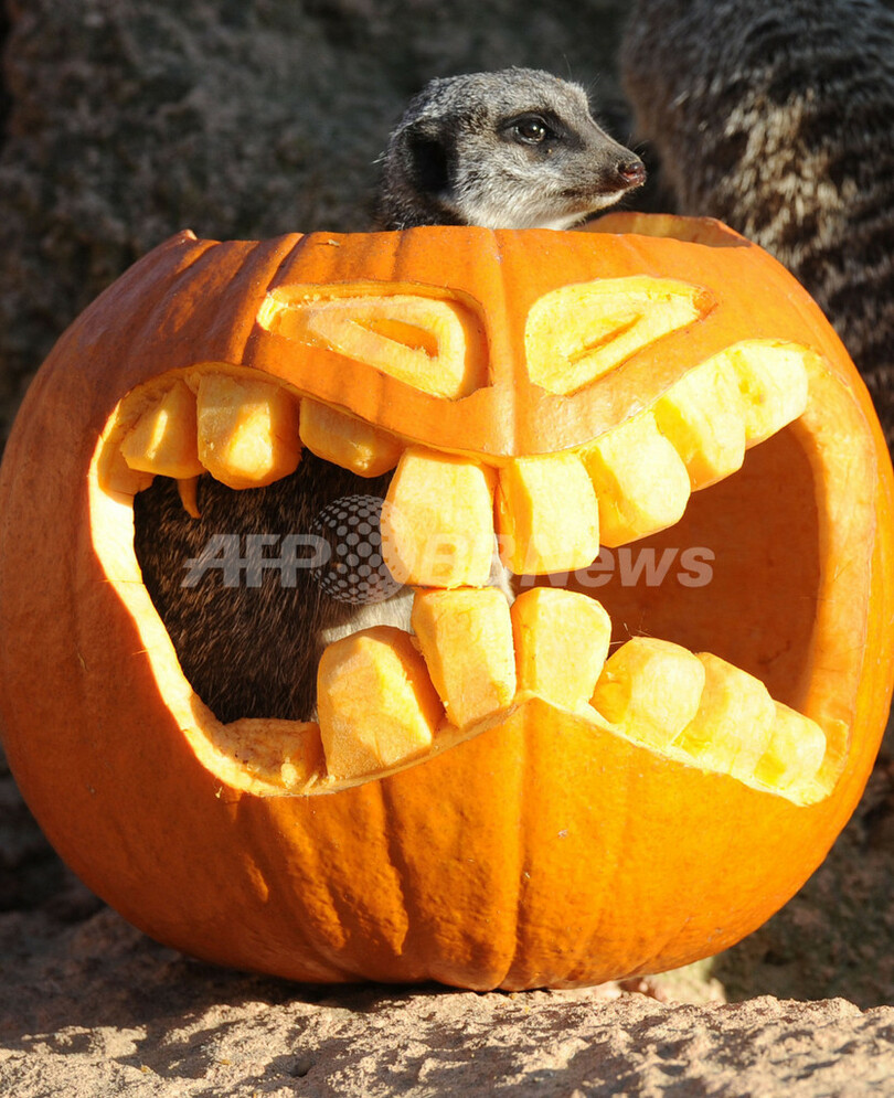 ニュース ライフ こぼれ話 カボチャお化けがミーアキャットをパクッ!?ドイツ 2011年10月28日 13:10 発信地:ハノーバー/ドイツ [ ヨーロッパ ドイツ ] このニュースをシェア ‹ › ❮ 3/5 ❯ ドイツ中部ハノーバー(Hanover)の動物園で、ハロウィーンの飾りつけのカボチャのちょうちん「ジャック・オ・ランタン」で遊ぶミーアキャット(2011年9月9日撮影)。(c)AFP/JOCHEN LUEBKE 画像作成中 ! 【10月28日 AFP】ドイツ中部ハノーバー(Hanover)の動物園では27日、動物たちの住む囲いの中にもカボチャのちょうちん「ジャック・オ・ランタン」などでハロウィーンの飾りつけが施された。来園者だけでなく、動物たちにも好評のようだ。(c)AFP ライフ 一覧へ> メディア・報道関係・法人の方向け 写真・動画 購入のお問合せ>