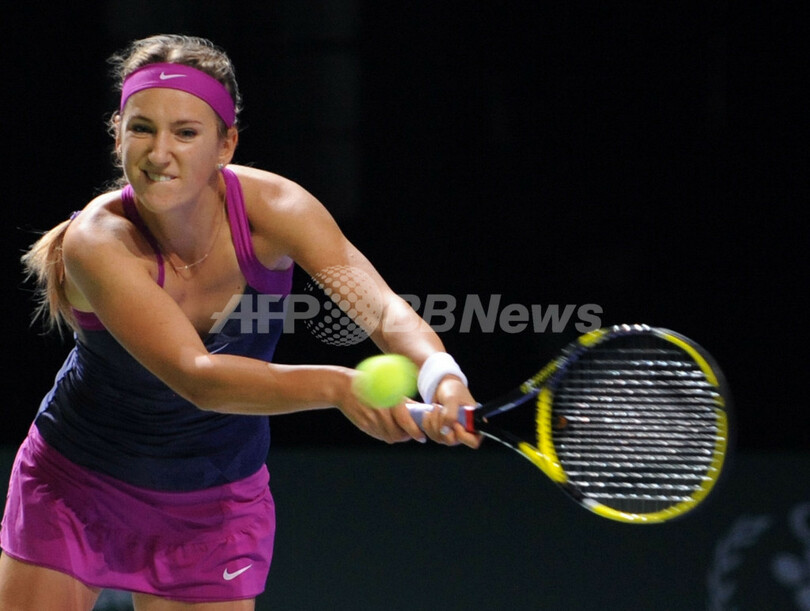 リターンショットを打つビクトリア・アザレンカ(2011年10月28日撮影)。(c)AFP/BULENT KILIC