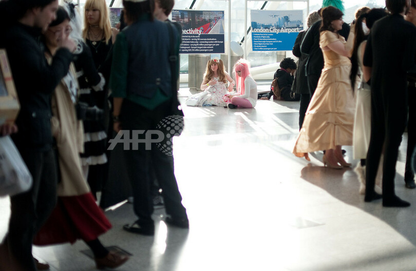 英ロンドン(London)東部のエクセル(ExCel)センターで前週末、ロンドン・コミックコン(London Comic Con)が開催された。写真は、コスプレ姿で来場した女性(2011年10月29日撮影)。(c)AFP/LEON NEAL