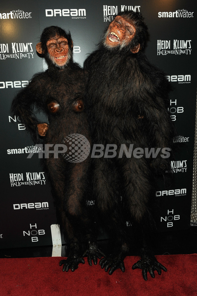 ロサンゼルスで10月29日に開催されたパーティでは、全身タイツで“筋肉標本”に変身したハイディ。今回は、夫シールと共に特殊メイクで“猿 の惑星”に変身し、ゲストたちを出迎えた。