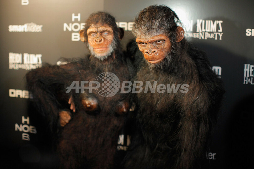 ロサンゼルスで10月29日に開催されたパーティでは、全身タイツで“筋肉標本”に変身したハイディ。今回は、夫シールと共に特殊メイクで“猿 の惑星”に変身し、ゲストたちを出迎えた。