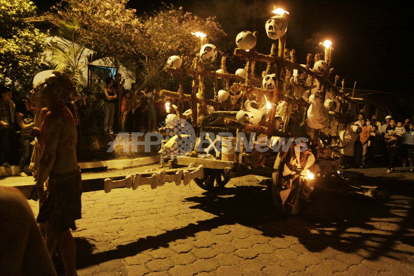 ニュース ライフ 中米エルサルバドルで万霊節の前夜祭パレード 2011年11月3日 11:29 発信地:トナカテペケ/エルサルバドル [ 中南米 エルサルバドル ] このニュースをシェア ‹ › ❮ 2/7 ❯ 中米エルサルバドルのトナカテペケ(Tonacatepeque)で1日、万霊節の前夜祭のパレード「La Calabiuza」が行われた。パレードでは地元住民たちが中部クスカトラン(Cuzcatlan)地方の先住民族の間に伝わる神話の登場人物などの仮装で市内を練り歩いた(2011年11月1日撮影)。(c)AFP/Oscar RIVERA 画像作成中 ! 【11月3日 AFP】中米エルサルバドルのトナカテペケ(Tonacatepeque)で1日、万霊節の前夜祭のパレード「La Calabiuza」が行われた。パレードでは地元住民たちが中部クスカトラン(Cuzcatlan)地方の先住民族の間に伝わる神話の登場人物などの仮装で市内を練り歩いた。(c)AFP ライフ 一覧へ> メディア・報道関係・法人の方向け 写真・動画 購入のお問合せ>