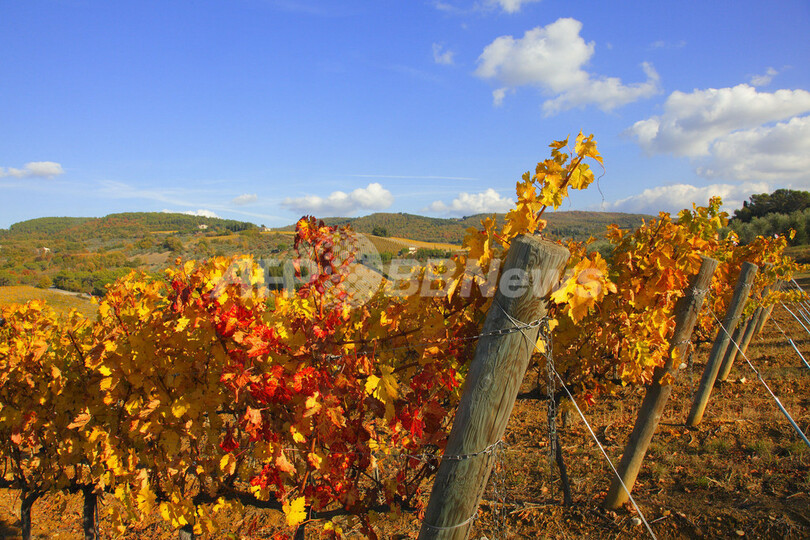 ぶどう畑は秋の輝き、イタリア・トスカーナ州