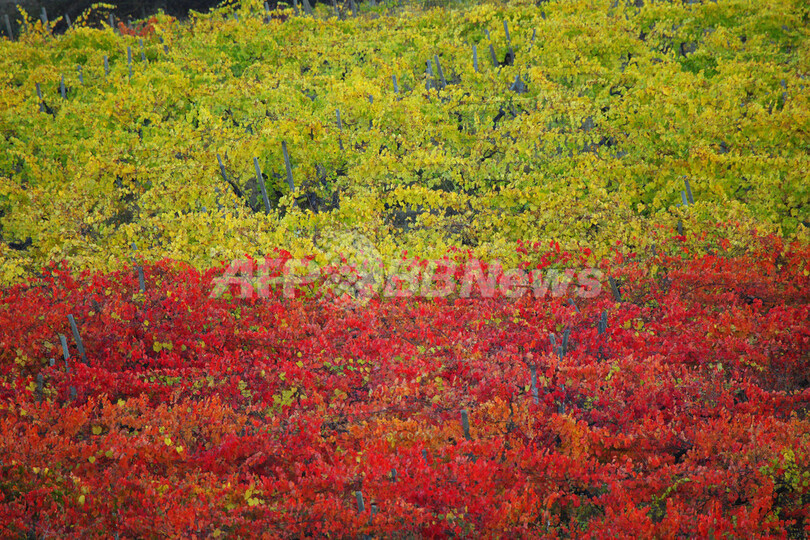 イタリア中部トスカーナ(Tuscany)州パッシニャーノ(Passignano)のぶどう畑は紅葉の季節を迎えた。パッシニャーノはワイン、キャンティ・クラシコ(Chianti Classico)の産地として知られている(2011年11月2日撮影)。(c)AFP/FABIO MUZZI