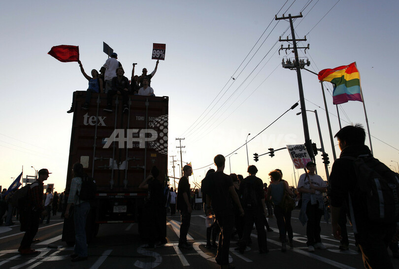 【11月3日 AFP】米カリフォルニア(California)州オークランド(Oakland)の港湾当局は2日、全米に拡大する抗議行動「Occupy Wall Street(ウォール街を占拠せよ)」に呼応したデモ隊が港に近づいたため、港を閉鎖する措置をとった。オークランド港は米国でも最も貨物取扱量が多い港の1つ。