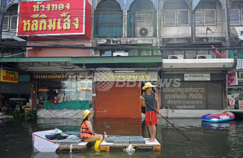 洪水は市中心部には到達していないが、バンコクの北部や西部では腰の高さ以上まで濁った水に浸かった地域も出ている。今回の洪水による死者はタイ全土で437人に達しているが、これまでのところバンコク市内で死者が出たという公式な情報はない。