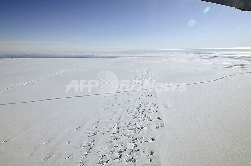 割れ目は少なくとも長さ30キロ、深さ50メートルに達しており、1日に約2メートルずつ広がっているという。このまま割れ目が広がり続ければ、最終的には面積880平方キロの氷山となる可能性があるという。(c)AFP