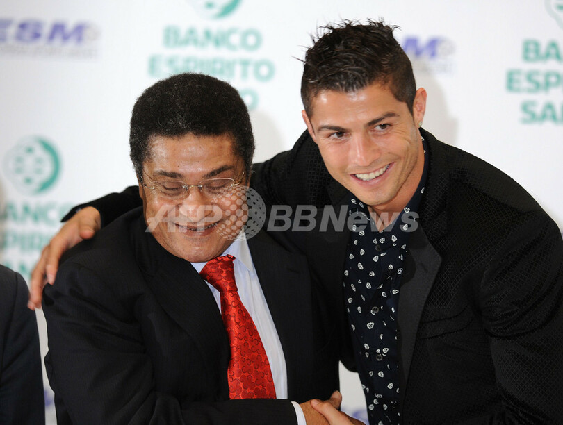 授賞式でエウゼビオ氏(Eusebio da Silava Ferreira、左)とポーズをとるクリスティアーノ・ロナウド(2011年11月4日撮影)。(c)AFP/DANI POZO