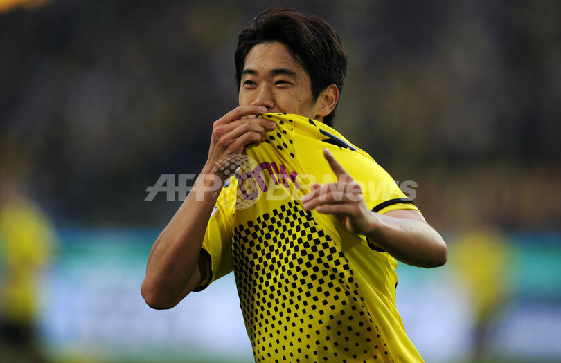 ゴールを決め歓喜するドルトムントの香川真司(Shinji Kagawa、2011年11月5日撮影)。(c)AFP/PATRIK STOLLARZ